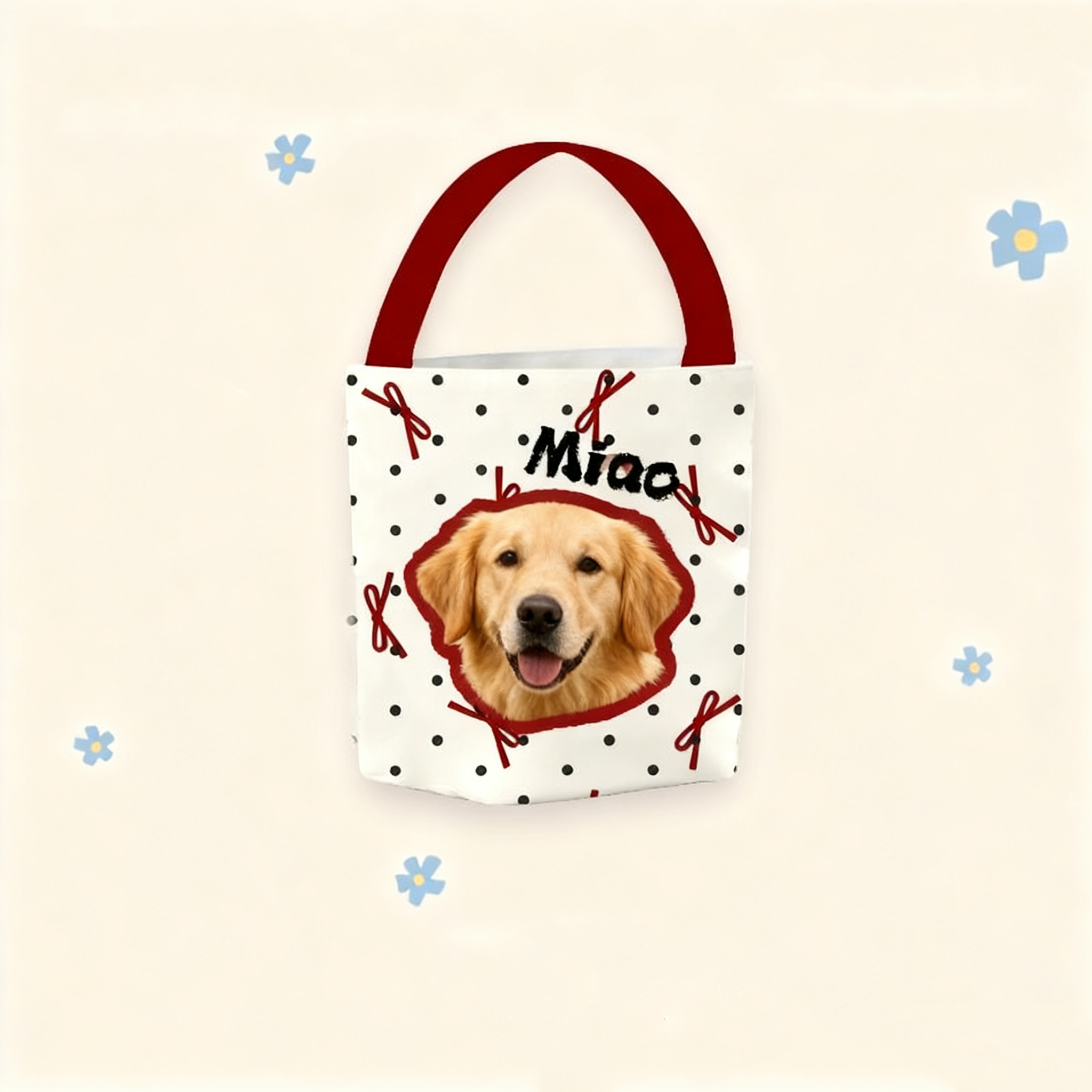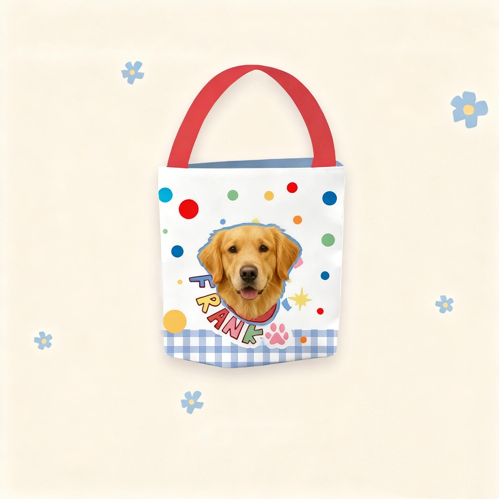 Carry your furry friend everywhere with this custom canvas bucket bag featuring your pet’s portrait!