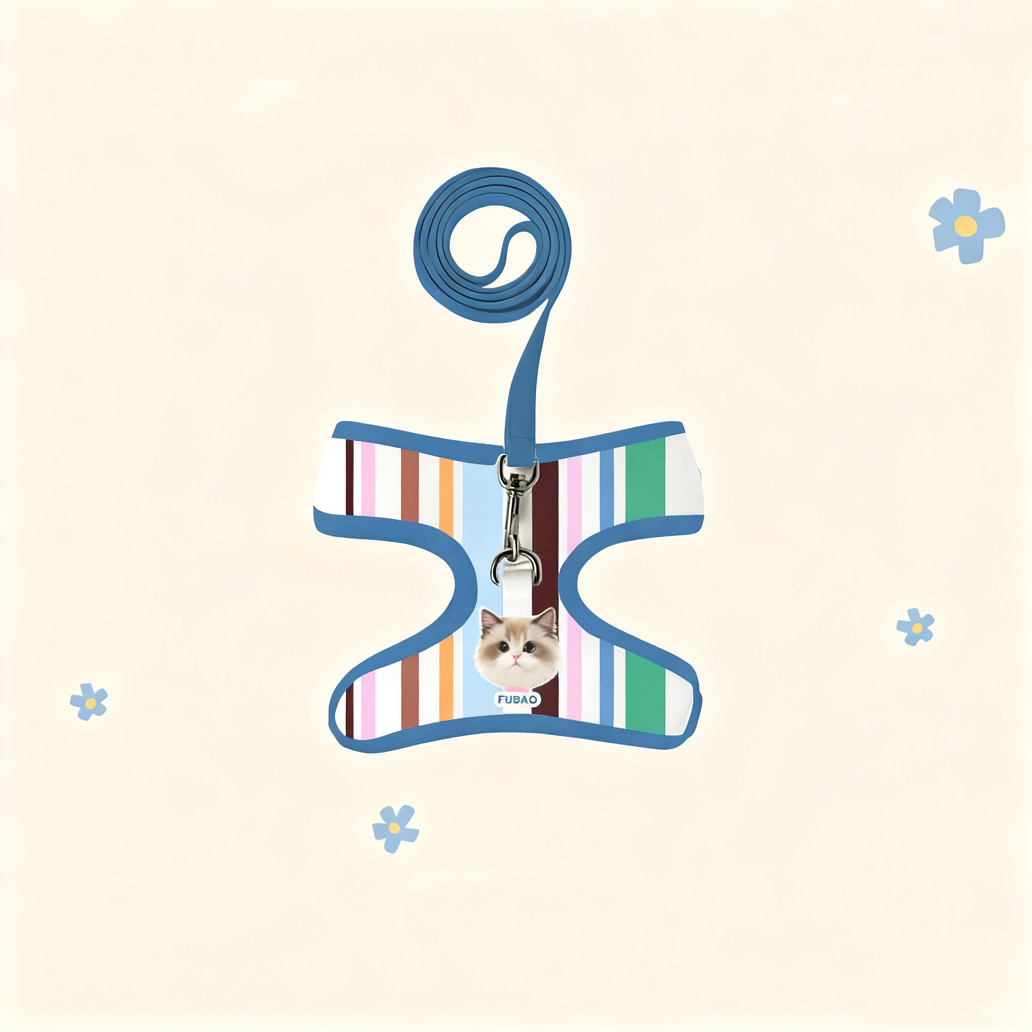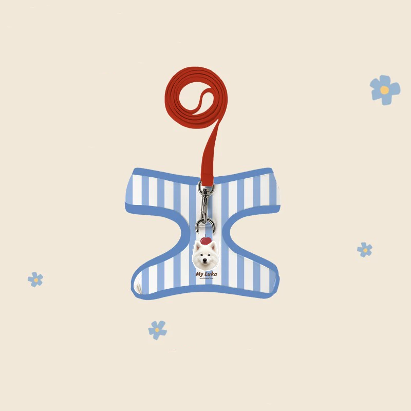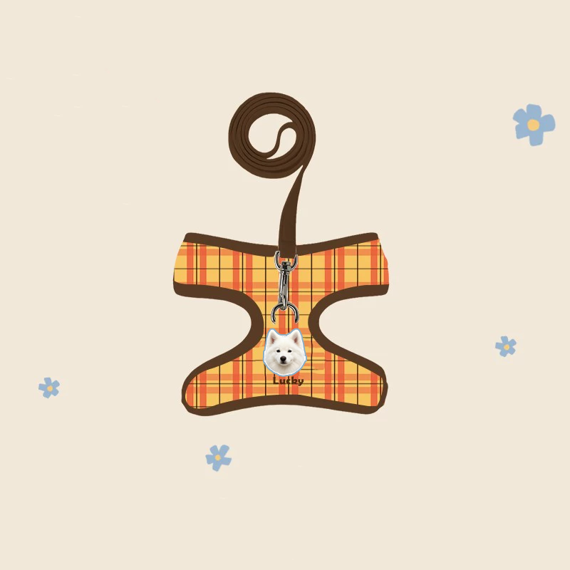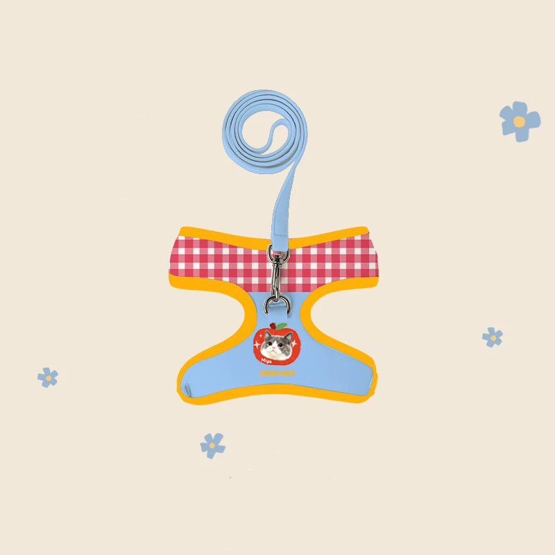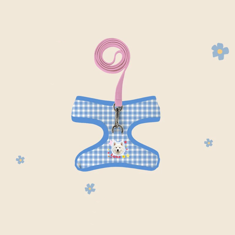Walk in style with this custom harness and leash set featuring your pet’s portrait!