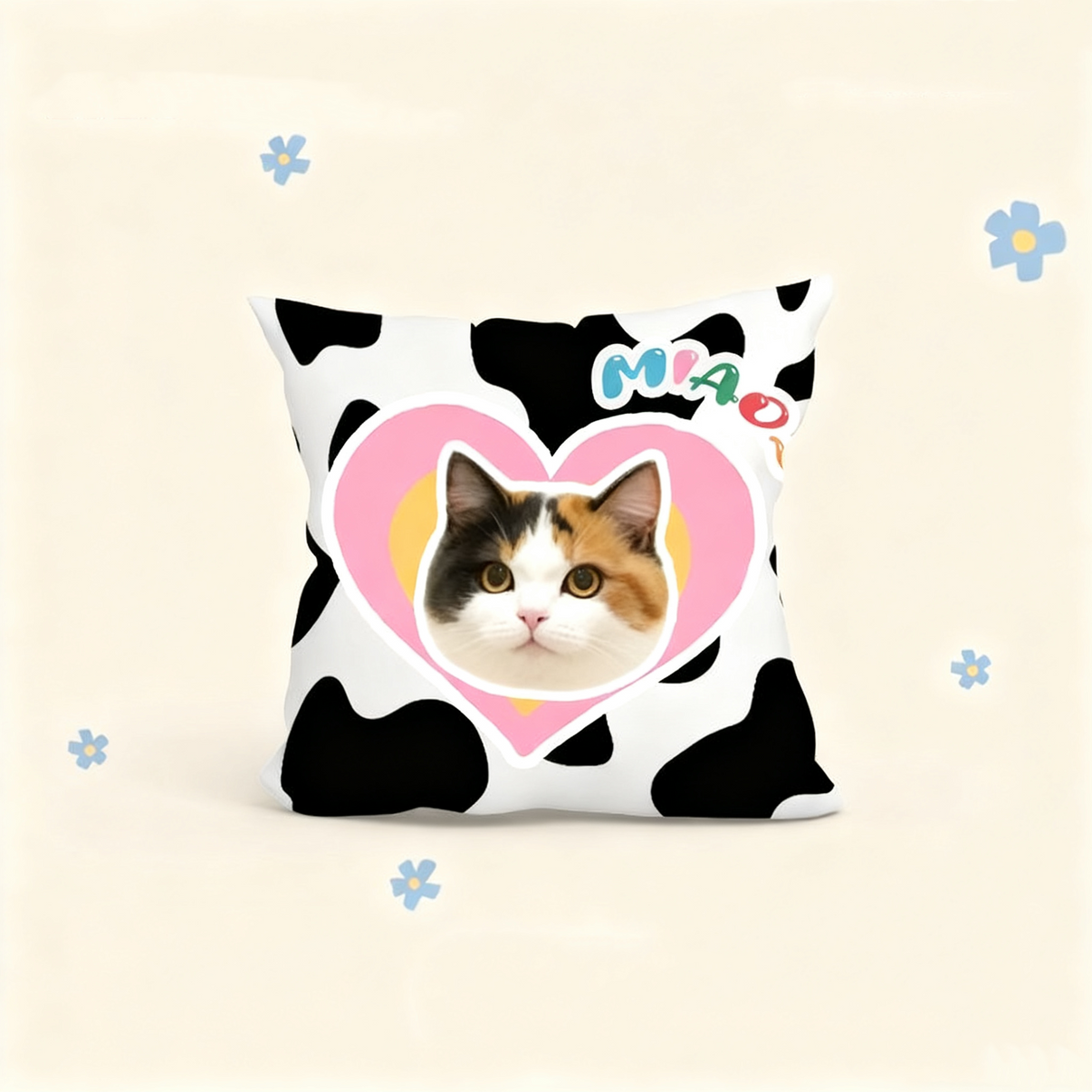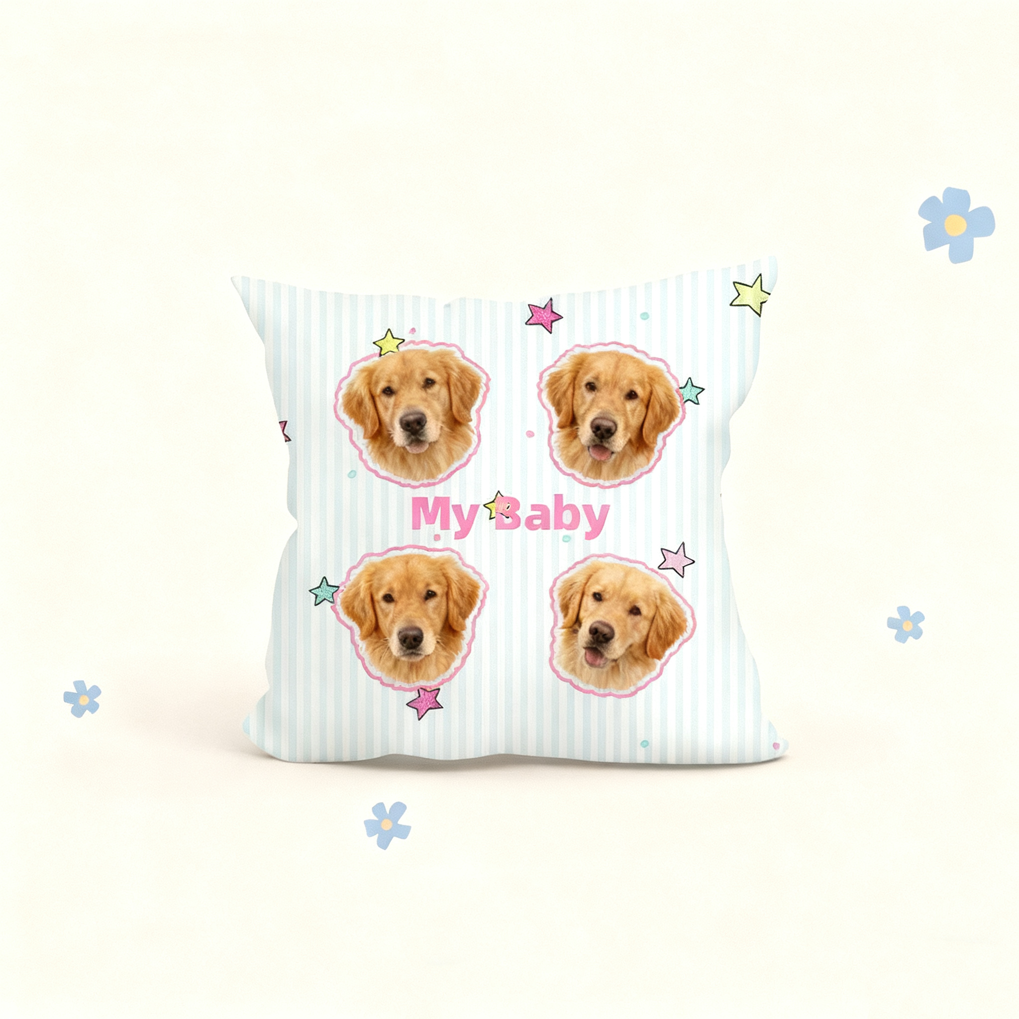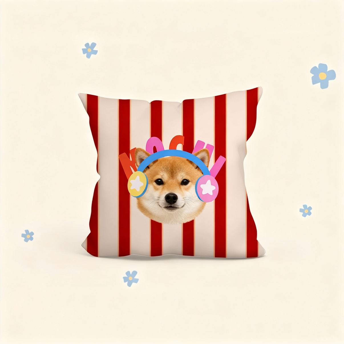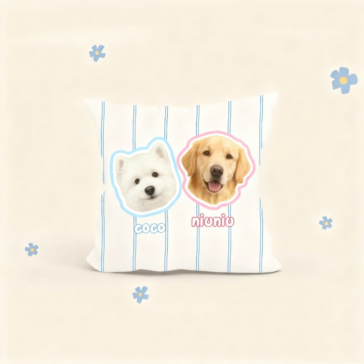 Each square cushion is printed with your dog or cat’s photo — a perfect keepsake or gift for pet lovers.