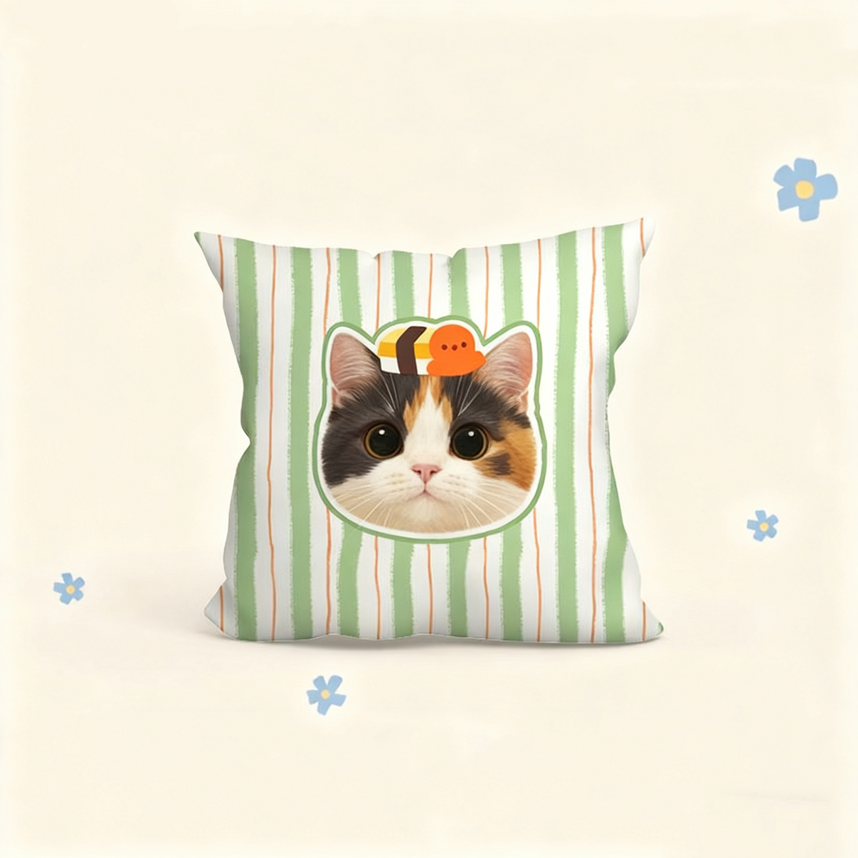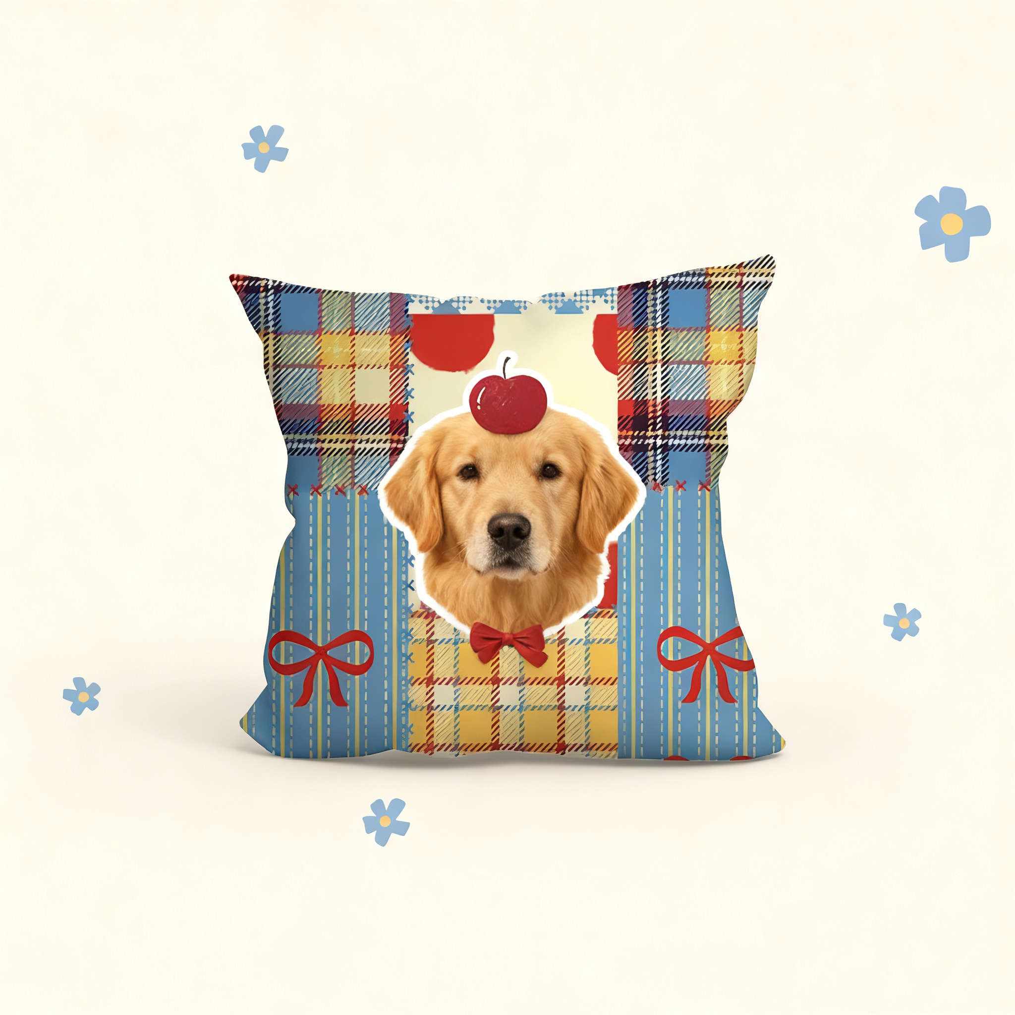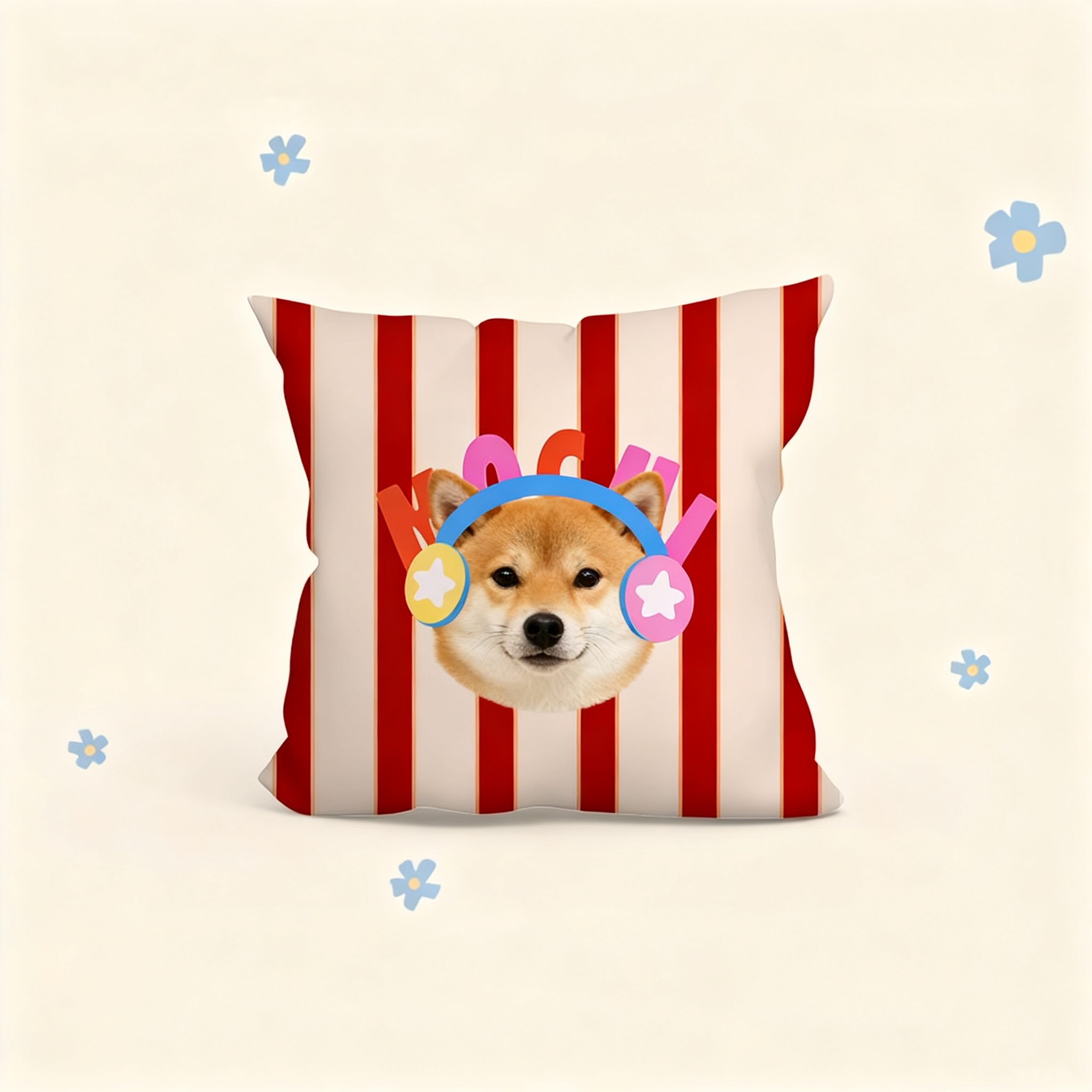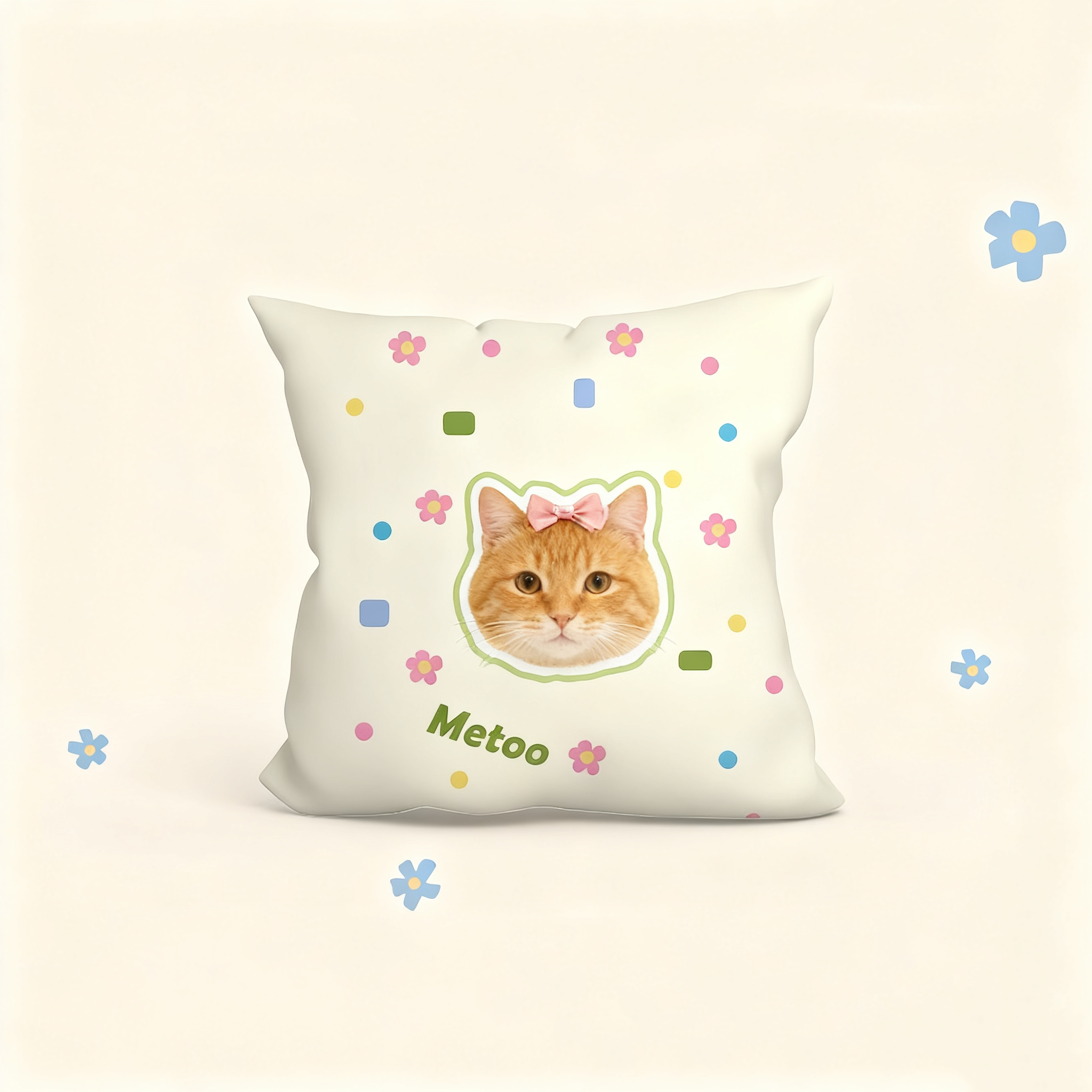 Each square cushion is printed with your dog or cat’s photo — a perfect keepsake or gift for pet lovers.
